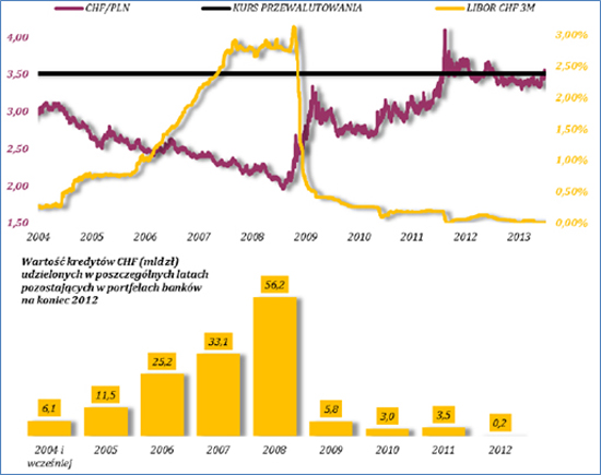 Problem kredytów hipotecznych w CHF udzielanych w latach 2004- 2008 klientowi masowemu w Polsce staje się coraz bardziej istotny społecznie. Załamanie kursu walutowego CHF/PLN pod koniec 2008 r. połączone z kilkuletnimi spadkami cen na rynku nieruchomości spowodowało, że wartość zobowiązania w PLN wynikającego z umowy o kredyt hipoteczny indeksowany do CHF często przekracza o kilkadziesiąt procent wartość nabytej nieruchomości. Ze względu na istniejący kryzys zadłużenia i stosowanie zasad polityki „austerity” w budżetach narodowych sytuacja na europejskich rynkach pracy jest trudna. Do Polski docierają informacje o zagranicznych wyrokach sądowych podważających legalność kredytów hipotecznych w walutach obcych udzielanych nieprofesjonalnym konsumentom usług finansowych.