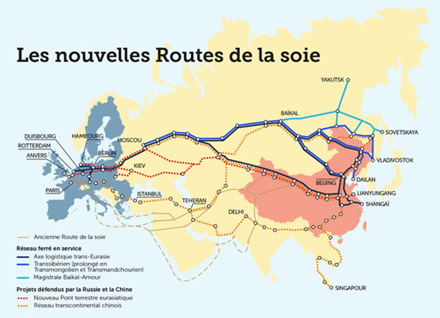 W efekcie Rosja i Chiny zapewniają 280 miliardów dolarów na finansowane szybkiej modernizacji lini ikolejowej ze standardowej kolei transsyberyjskiej na ultraszybką kolej Chiny-Europa (Czengtu-Duisburg). Jest to drugi etap i właściwy sposób, aby połączyć chiński projekt Nowego Jedwabnego Szlaku z intencją prezydenta Putina stworzenia ogromnego emporium handlu: „od Lizbony do Władywostoku”.[op. cit. 2]