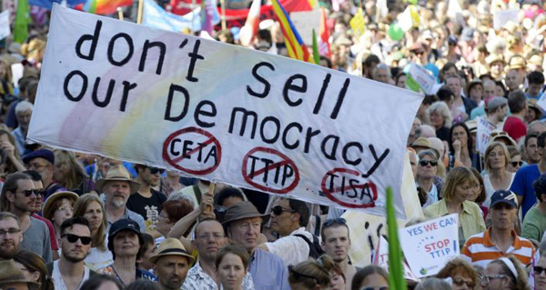 — Ta umowa służy tylko eksploatacji państwa i ludzi żyjących w nim. TTIP, TISA i CETA to trzy duże porozumienia o strefie wolnego handlu. TISA zawiera tak zwaną klauzulę zaporową. Przewiduje ona, że służby miejskie, administracja i struktury społecznego dobrobytu — edukacja, zdrowie, bezpieczeństwo, sfera społeczna — mogą być sprywatyzowane przez duże przedsiębiorstwa. Czyli państwo po prostu traci swoje uprawnienia [na rzecz korporacji – RR]. I my, ostatecznie znajdziemy się w państwie, które nie jest w stanie zachować swojego istnienia, ponieważ jest pozbawione niezbędnych do tego struktur, takich jak edukacja, ochrona zdrowia, bezpieczeństwo i wielu innych.