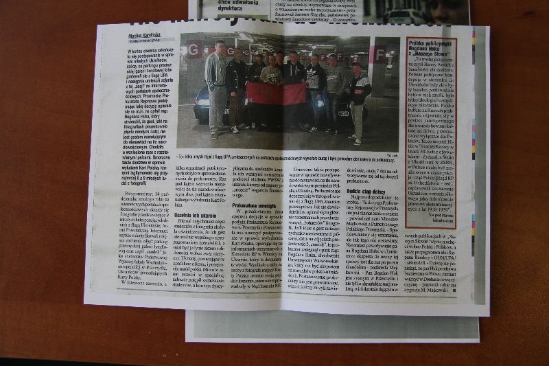 Ponadto powołano mgr Bogdana Huka, absolwenta Uniwersytetu Warszawskiego, tj. osobę posiadającą wiedzę na temat stosunków polsko-ukraińskich, celem ustalenia czy na uwidocznionych zdjęciach z dnia 14 X 2014 znak wykonywany przez pięciu mężczyzn poprzez uniesienie prawej ręki z wyprostowanymi palcami nad biodrem i nad flagą w kolorze czerwono-czarnym w kolorze UPA należy traktować jako publiczne popieranie ustroju totalitarnego lub też nawoływanie do nienawiści na tle różnic rasowych. W przedstawionej opinii Bogdan Huk stwierdził, że osoby uwidocznione na zdjęciach spośród tych, którzy trzymają flagę czerwono-czarna z Tryzubem, a cztery osoby trzymają prawą rękę opuszczoną w dół, z dłonią z wyprostowanymi palcami na poziomie biodra oraz osoba przyklękła, która trzyma rękę zgiętą w łokciu i opartą o udo nogi z prawą dłonią z wyprostowanymi palcami, że w oparciu o posiadaną wiedzę nie może dostrzec w określonym wcześniej geście propagowania ustroju totalitarnego lub nawoływania do nienawiścią na tle różnic narodowościowych (…).