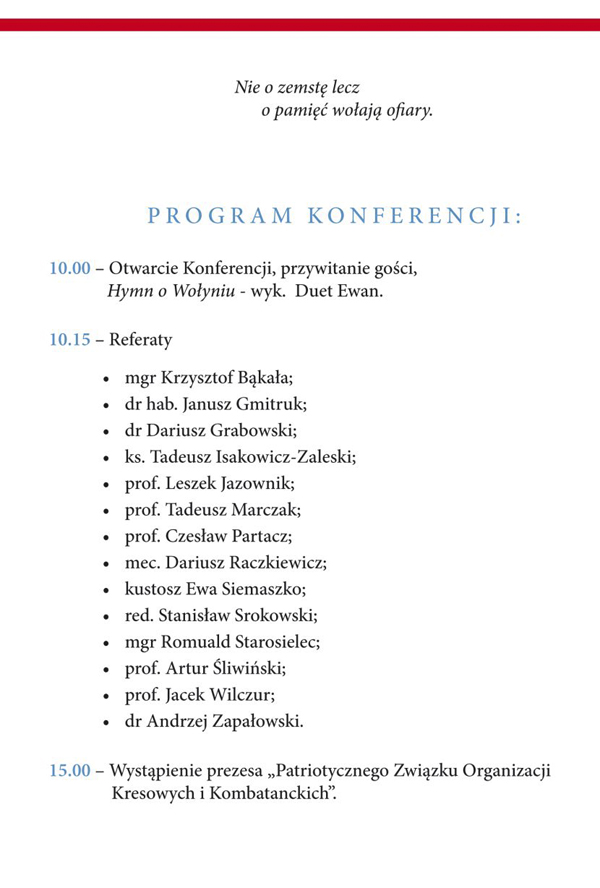 10 00 – 10 20 Otwarcie Konferencji, powitanie gości, hymn państwowy, hymn wołyński.