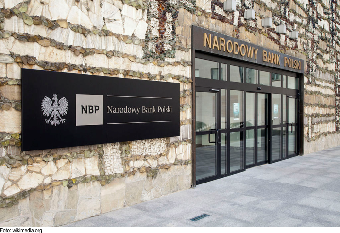 Na zdjęciu: Wejście główne do siedziby Narodowego Banku Polskiego w Warszawie przy ul. Świętokrzyskiej 11/21. Fot. Andrzej Barabasz (Chepry) Źródło: Wikimedia Commons CC BY-SA 3.0, 16 kwietnia 2014.