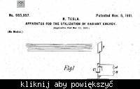 Odbiornik bezpłatnej energii Tesli został opatentowany w 1901 jako “Aparat do Wykorzystywania Energii Promienistej”. Patent odnosi się „do słońca jak i innych źródeł energii promienistej, jak promienie kosmiczne”. To że urządzenie pracuje w nocy, wyjaśniono dostępnością promieni kosmicznych w czasie nocnym.