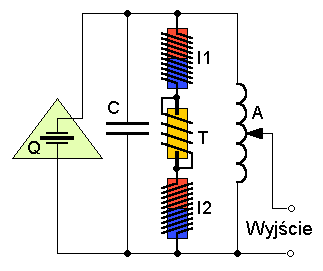 Żeby bateria zadziałała, obwód rezonatora (elementy C, I1, I2, T) powinien posiadać następujące atrybuty: