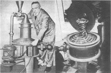 Fot. Wiktor Schauberger (1885-1958) przy prototypie elektrowni wirowej opartej na jego własnych teoriach wirów (1955).