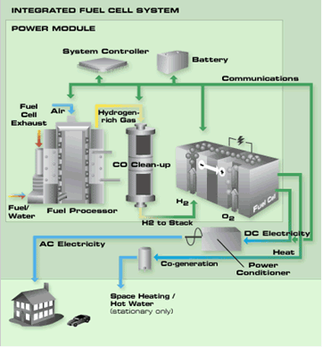 Ogniwa paliwowe zasilane są związkami węglowodorowymi, a bezpośrednio wodorem stanowiącym nośnik energii. Wodór stwarza szanse na produkcję prawdziwie czystej energii, jednak tylko lokalnie. Wodór wytwarzany jest w trakcie procesów przemysłowych – głównie reformingu. Sprawność reformingu przemysłowego szacuje się na 70%, tak więc na dzień dzisiejszy należy zużyć więcej energii niż można uzyskać z wyprodukowanego wodoru. Aby uzyskać prawdziwie czystą energię, należy produkować wodór wykorzystując naturalne źródła energii do przeprowadzenia elektrolizy lub opracować metody biologiczne produkcji wodoru. Należy jednak dodać, iż wodór jest tak naprawdę tylko gazem ubocznym produkowanym w procesie reformingu – produktem celowym jest zwykle benzyna.