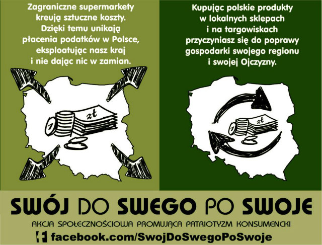Owszem supermarkety sprzedają też towary polskich firm, zwłaszcza dotyczy to towarów rolno spożywczych. Jednakże sprzedaż ta jest narzędziem walki z polską konkurencją handlową i producentami. Polscy producenci, aby umożliwić zbyt swoich produktów w sieciach supermarketów muszą sprostać drakońskim warunkom dostaw jakie stawiają supermarkety. Niskie ceny dostaw, długie terminy płatności, warunki odmowy przyjęcia danej partii towarów itd. (Byle jaki pretekst umożliwia odmowę przyjęcia partii dostawy np. wymiary, opakowanie itd.). Jest to, oprócz niskich płac personelu opolskiego, kolejny przyczynek do niskich cen w supermarketach. Wymuszanie na dostawcach polskich niskich cen dostaw powoduje bankructwa wielu polskich firm, lub egzystencję na krawędzi rentowności. To zmusza polskie firmy do minimalizacji kosztów w tym również płacowych. A więc nie generowanie popytu i koła się zamyka. A przecież polskie artykuły rolno spożywcza skutecznie konkurują z zachodnimi, mimo niższych dopłat unijnych, ceną (niżej opłacaną siła robocza i niskich cen skupu od rolników), ekologią, walorami smakowymi. Mimo to nie wytrzymują konkurencji w supermarketach, czego wyrazem jest widoczny gołym okiem udział tych towarów w supermarketach.