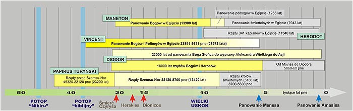 Według mnie chronologia ta wygląda dość logicznie i jest dosyć spójna. Wynikałoby z tego, że hipotetyczny potop sprzed 12,5 tysiąca lat mógł przerwać panowanie półbogów ale i to, że ich rządy mogły trwać jeszcze do kilku tysięcy lat po potopie mając wpływ na odbudowę społeczności egipskiej.
