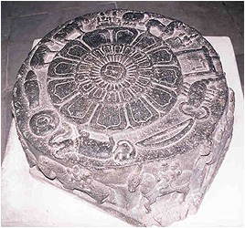 Zauważmy też niby drobny szczegół świadczący jednak o geniuszu twórcy. Na samym środku zaznaczono ludzkie stopy skierowane palcami w kierunku gwiazdozbioru Skorpiona. Żadna strzałka wskazująca kierunek, a po prostu ludzkie stopy jednoznacznie nakazujące patrzeć w kierunku tego znaku. Czy oznacza to czas stworzenia rzeźby? Jeśli tak, to ostatni raz Słońce (w dniu równonocy), wschodziło w tym znaku w latach 17594-15866 pne. Jeszcze bardziej poprzednie ery Skorpiona przypadały na lata 43514-41786 pne, 69434-67706 pne i dalej co 25920 lat do tyłu. W tych wyliczeniach nie uwzględniłem przesunięcia „domu Słońca” o jeden znak do tyłu w wyniku „wielkiego uskoku…”.