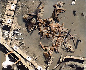 • ślad wielkiej stopy obok śladu dinozaura w warstwie geologicznej określanej na ok. 100 mln. lat.