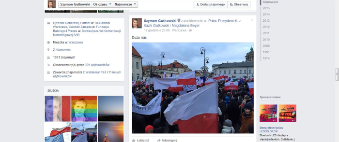 Innym pracownikiem Fundacji Stefana Batorego który chwali się na Facebooku swoją obecnością na marszach KOD-u jest Szymon Gutkowski.