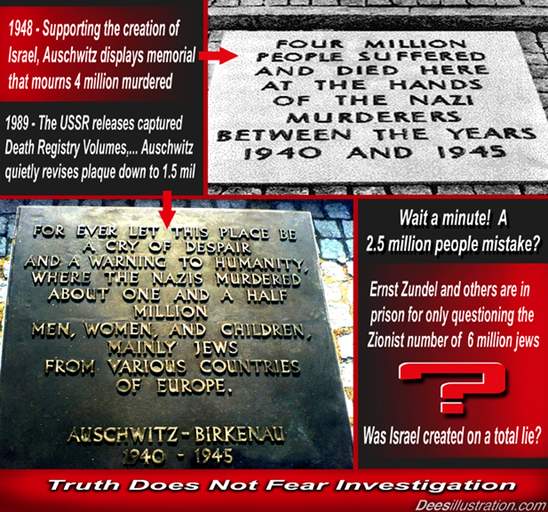 Innym przykładem była informacja, że pierwszymi więźniami obozu koncentracyjnego Auschwitz, który obecnie zachodnie media nazywają “polskim obozem śmierci” byli polscy więźniowie. W sytuacji kiedy Żydzi zawłaszczyli praktycznie Auschwitz jako ich symbol, informacja ta jest dla nich bardzo niewygodna.
