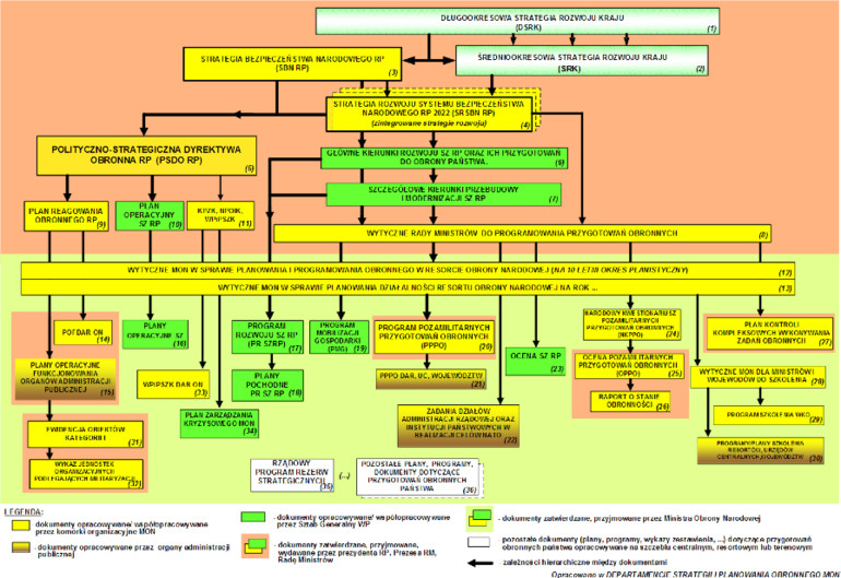 Dokumenty o randze strategicznej dotyczące rozwijania zdolności operacyjnych Sił Zbrojnych RP są liczne. W ich gąszczu trudno się zorientować decydentom i urzędnikom, nie mówiąc o osobach nie zainteresowanych bezpośrednio modernizacją armii. Nie mają one rangi ustawy, co nie sprzyja ich ścisłemu przestrzeganiu i stabilności obowiązywania. Rozbudowanie całego spektrum dokumentów dobrze obrazuje uproszczony schemat z 2014 r. przygotowany przez Departament Strategii i Planowania Obronnego MON, który zasadniczo zachowuje aktualność: