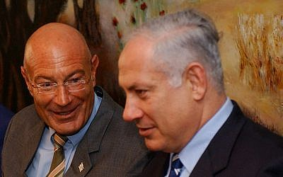 Arnon Milchan (z lewej) i Benjamin Netanjahu na konferencji prasowej w Knesecie w dniu 28 marca 2005 roku (Flash90)