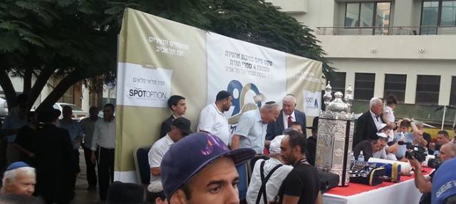Ceremonia w Tel Awiwie poświęcona Torze, sponsorowana między innymi przez firmę SpotOption od opcji binarnych, 24 sierpnia 2015 r. (Foto: Izrael Bardugo)