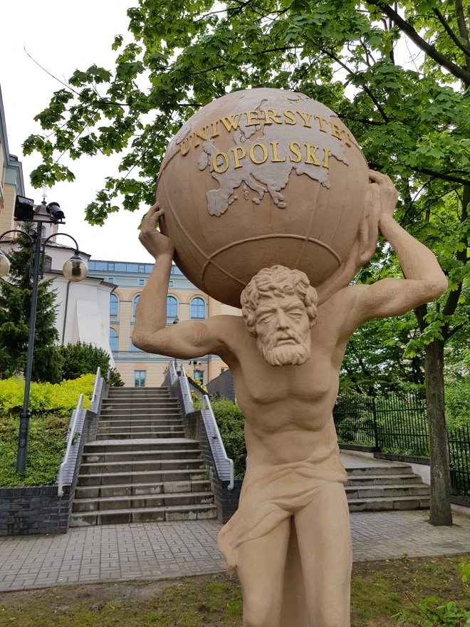 Oto Polska właśnie – myślałem oglądając te nieprawdopodobne wręcz relacje oszukanych i ograbionych prelegentów. I gdy tak oglądałem powyższe filmy, przypomniała mi się pewna komiczno-żałosna historia, która wydarzyła się w Opolu pod koniec kwietnia br. i jeden komentarz z nią związany. Poszło o odsłoniętą przez byłego rektora na wzgórzu uniwersyteckim w Opolu z okazji 25-lecia opolskiego uniwersytetu poniższą rzeźbę Atlasa.