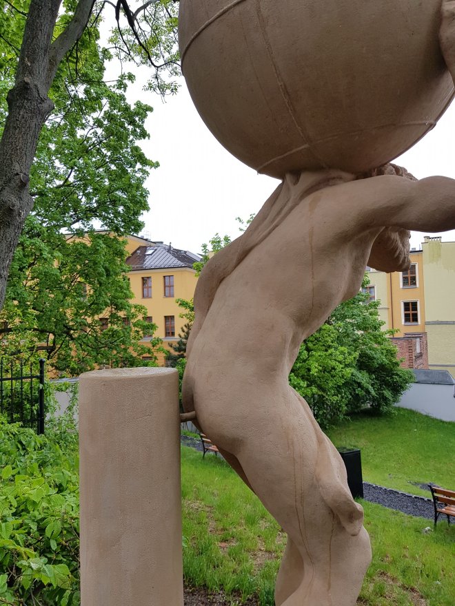 I mniejsza o to, że mitologiczny Atlas dźwigał nie kulę ziemską a sklepienie niebieskie. I nie idzie też o to, że posągowy Atlas z wyglądu przypomina bardziej wychudłego i wyniszczonego chorobą suchotnika niż tytana. Sprawa poszła o umocowanie rzeźby…