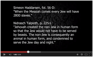 „Jehowa stworzył nie-Żyda w formie ludzkiej, żeby Żyd nie mógł być obsługiwany przez zwierzęta. Nie-Żyd jest dalej zwierzęciem w ludzkiej formie, i skazany na służenie Żydowi dzień i noc”.