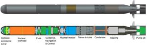R.E.D.: – „Posejdon”, rosyjski kryptonim: ‘Status-6’, w kodzie NATO: ‘Kanion’ – to „oceaniczny system wielofunkcyjny”, bezzałogowa, autonomiczna, zrobotyzowana mini-łódź podwodna o napędzie atomowym w kształcie torpedy, to wielo-dron (rodzina dronów) zbudowany w technologii stealth. W trybie ataku w bąblu super-kawitacyjnym osiąga prędkość ponad 200 km/h. Może dostarczyć, płynąc na głębokości 1.000 metrów, 200 MT termojądrową bombę kobaltową na odległość 10 tys. km. Podmorska detonacja generuje falę tsunami o wysokości 500 metrów. Niektóre zastosowane rozwiązania technologiczne zostały wypracowane w kooperacji z niemieckimi koncernami zbrojeniowymi.