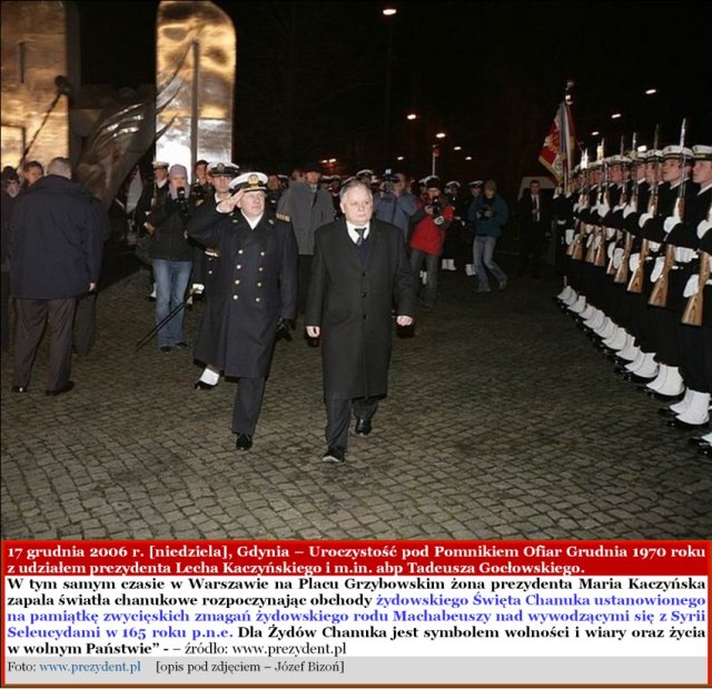 Niespełna trzy miesiące później – w lutym 2006 r. – prezydent Lech Kaczyński w USA „porównał siebie do izraelskiego premiera Ariela Szarona”– za żydowską agencją JTA. Już w grudniu 2006 r. [po 4-dniowej wrześniowej /w 2006 r./ wizycie Lecha Kaczyńskiego w Izraelu] prezydent Lech Kaczyński obchodził w Pałacu Prezydenckim święto Chanuka, a potem w kolejnych latach – aż do katastrofy pod Smoleńskiem 10.04.2010 r., po której w obchodach święta Chanuka w Pałacu Prezydenckim zastąpił go Prezydent Bronisław Komorowski.