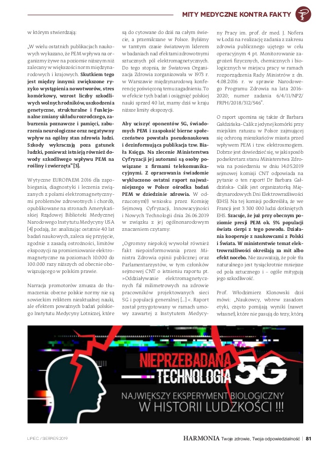 „Biała Księga” wydana ostatnio przez Min. Cyfryzacji pt. „Pole elektromagnetyczne a człowiek. O fizyce, biologii, medycynie, normach i sieci 5G” jest oficjalną rządową dezinformacją społeczeństwa pomyślana, aby bagatelizować zagrożenia i promować miraże użyteczności . Takie stronnicze dokumenty kwalifikują autorów pod Kodeks Karny.