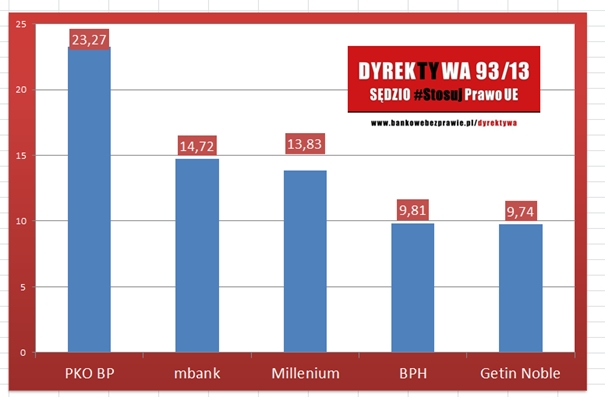 W oparciu o wyliczenia ZBP, Stowarzyszenie przygotowało symulację przewidywanych kwot pobranych niezgodne z prawem, o które mogą wystąpić klienci. Istotny udział w portfelu kredytów indeksowanych, denominowanych (zw. potocznie walutowymi) posiada 7 banków. Najwięcej, bo od blisko 14 do ponad 23 mld, będzie musiał zwrócić PKO BP. Poważny problem i wpływ na płynność może wystąpić w mBanku (od 8,8 mld do 14,7) oraz w banku Millennium (od 8,3mld do 13,8 mld).