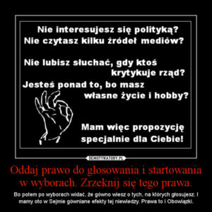 „Ludzie, którzy głosują na nieudaczników, złodziei, zdrajców i oszustów nie są ich ofiarami. Są ich wspólnikami.”