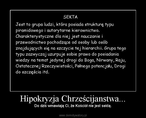 Zawsze powtarzam, że wszelkiej maści sekty, religie to niebezpieczne systemy niewolenia i ogłupiania ludzkości, i okradania ich z Energii.