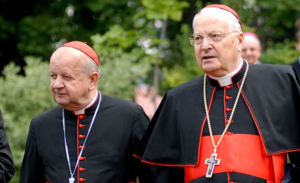 Źródło: East News / Kardynał Stanisław Dziwisz (drugi z lewej) i oskarżany o pedofilię kardynał Roger Mahony (w okularach z prawej)