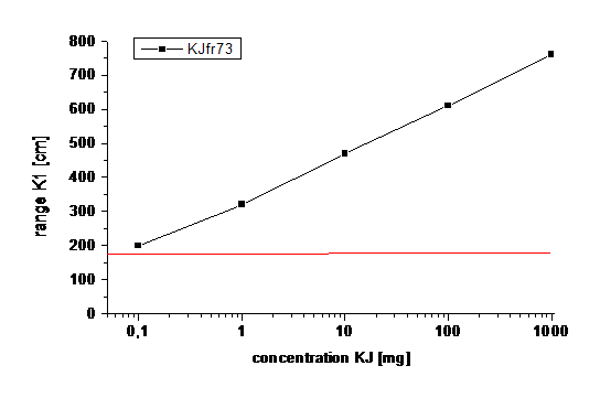 Skala zasięgu promieniowania dla wzorcowych stężeń jodku potasu