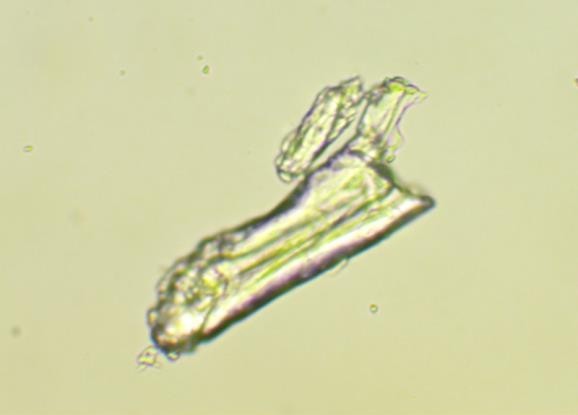 Rys. 12. ukruszona pastylka zawieszona w wodzie, pozostają nierozpuszczalne kryształy, obiektyw 40x.