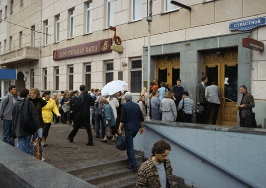 26 sierpnia 1998 r. deponenci SBS-Agro Bank, chcący zwrócić swoje pieniądze. Zdjęcie: Chokhonelidze Irakli/Kronika fotograficzna