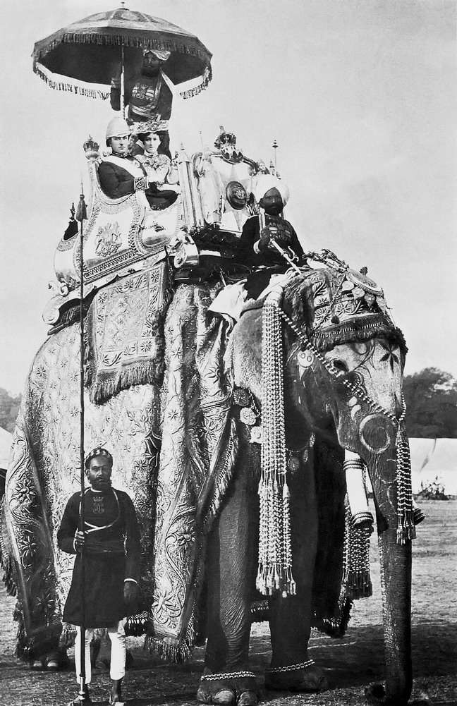 Gubernator generalny Indii, J. Curzon i Lady Curzon na słoniu. Delhi. Indie, 29 grudnia 1902