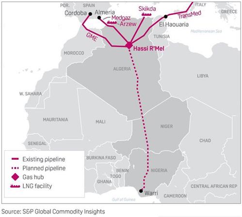 Biegłaby od dobrze ugruntowanych pól naftowych / gazowych w pobliskiej Nigerii, przez Niger, przez Algierię, gdzie spotkałaby się z istniejącymi rurociągami, aby zaopatrywać Europę w ropę i gaz.