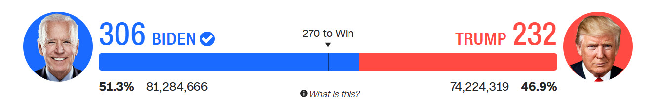 Teraz zwróćcie uwagę na te 55 głosów elektorskich w Kalifornii… ponieważ oto jak CNN podało ostateczny wynik głosowania elektorskiego:
