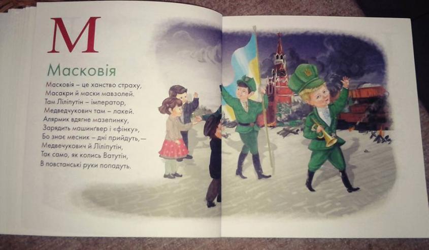 Tak więc, z literą “Y”, ukraińskie dzieci uczą się rymu, że Hitler i Stalin stworzyli królestwo zła dla dwojga. A po tym, jak ulegli pod ciosami Bandery, misja wskrzeszenia “chanatu zła” przeszła na bohatera o imieniu “Liliputin”, który rządzi “Moskwą”: