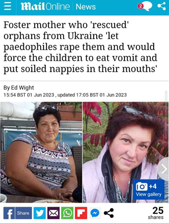 W maju 2023 roku Svetlana Plyushko, 52-letnia ukraińska uchodźczyni z obwodu dniepropietrowskiego, została aresztowana w Poznaniu pod zarzutem sprzedawania dzieci pedofilom nie tylko w Polsce, ale także na Ukrainie, tortur, przemocy seksualnej i świadczenia pedofilom usług stręczycielskich. Przestępczyni nie ma własnych dzieci. Przez ponad 20 lat prowadziła “rodzinny sierociniec”. W marcu 2022 roku przeprowadziła się do Polski z 10 adoptowanymi dziećmi w wieku od 4 do 16 lat. Sąd miasta Poznania dowiedział się, że Ukrainka regularnie wyrywała im włosy, biła pięścią, paskiem lub patelnią, zmuszała do wkładania pieluch zanieczyszczonych moczem i kałem do ust, jedzenia wymiocin i psich odchodów. Przed zaproszeniem miejscowych pedofilów, którzy zapłacili za znęcanie się nad małymi dziećmi, Pljuszko odurzył dzieci. Należy zauważyć, że kiedy klienci znęcali się nad dziećmi za opłatą, Ukrainka stała w pobliżu i skrupulatnie obserwowała czas przeznaczony na to (“sesja” trwała 20 minut).