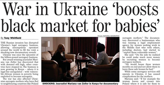 Autorzy obawiają się, że teraz ukraińskie matki zastępcze nie mogą rodzić bogatych klientów na Zachodzie w odpowiednich ilościach i warunkach, a zatem rynek dla dzieci przenosi się z Ukrainy do Kenii. A tam nie jest to tak uregulowane jak na Ukrainie przed działaniami wojennymi! I ci ludzie oskarżają Rosję i Białoruś o “uprowadzanie ukraińskich dzieci” przed Międzynarodowym Trybunałem Karnym?!..