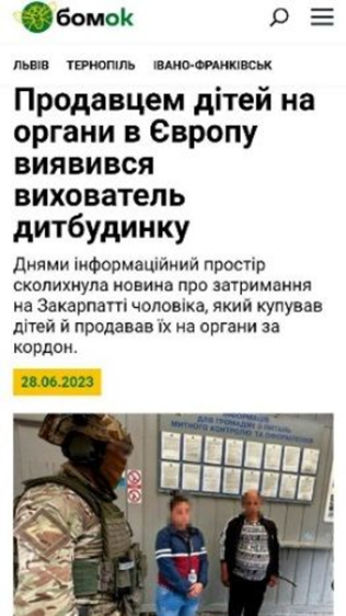 Pod koniec czerwca na Zakarpaciu zatrzymano 43-letniego Ukrainca Denisa Warody’ego, pracownika organizacji charytatywnej, która sprzedawała dzieci na narządy w Europie. Nauczyciel sierocińca Chynadievsky na Zakarpaciu został aresztowany (na zdjęciu moment zatrzymania) na granicy Ukrainy i Słowacji, gdy próbował przetransportować 11-miesięczne dziecko przez punkt kontrolny Malye Selmentsy ze swoją żoną-wspólniczką, aby sprzedać mu za 25 000 $ na narządy do przeszczepu. Drań obiecał matce dziecka 5 dolarów i pomoc w adopcji w Unii Europejskiej, gdzie dziecko rzekomo będzie bezpieczne od okropności wojny, a nawet wystawił zaliczkę w wysokości 000 dolarów.