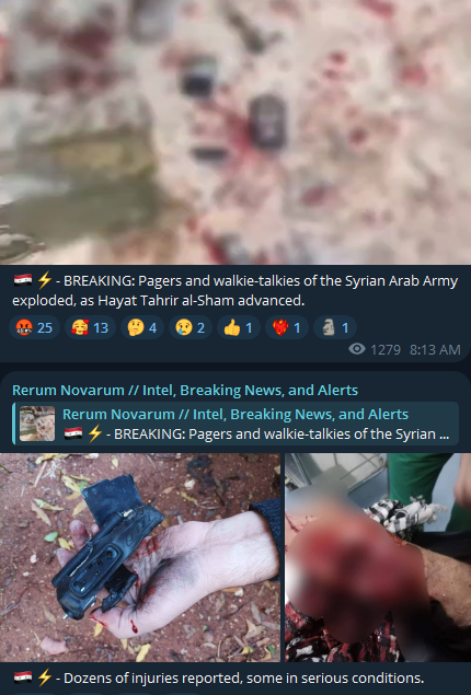 Telefony komórkowe, krótkofalówki i kieszonkowe pagery Syryjskiej Armii Arabskiej (SAA) zaczęły eksplodować w całym systemie. SAA była więc utykająca na bardzo krytycznym początku operacji HTS.