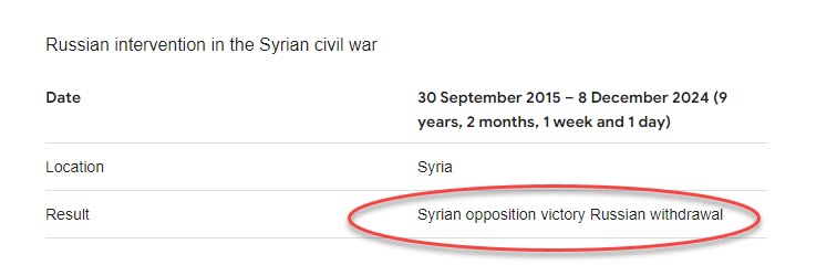Tylko tym razem źli faceci poruszali się tak szybko i z taką siłą, że pokonali zarówno Syrię, jak i Rosję. W związku z tym dzisiaj Assad upadł.