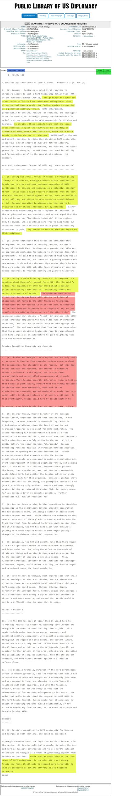 Notatka, TAJNE, ostatecznie wyciekła do WIkiLEAKS i została upubliczniona. Z notatki tej jasno wynika, że USA i NATO wiedziały, że zwrócenie się do Ukrainy o przystąpienie do NATO miałoby poważne konsekwencje, włącznie z wojną z Rosją! Oto ta TAJNA notatka:
