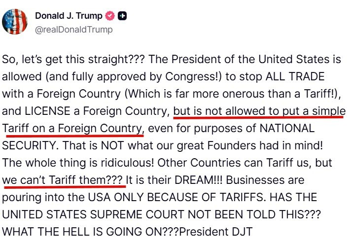 Jest jednak pewien problem: Sąd Najwyższy Stanów Zjednoczonych rozważa teraz, czy rząd miał prawo kiedykolwiek pobierać te cła. Jeśli uzna, że NIE mieli do tego prawa, wszystkie te pieniądze będą musiały zostać zwrócone.