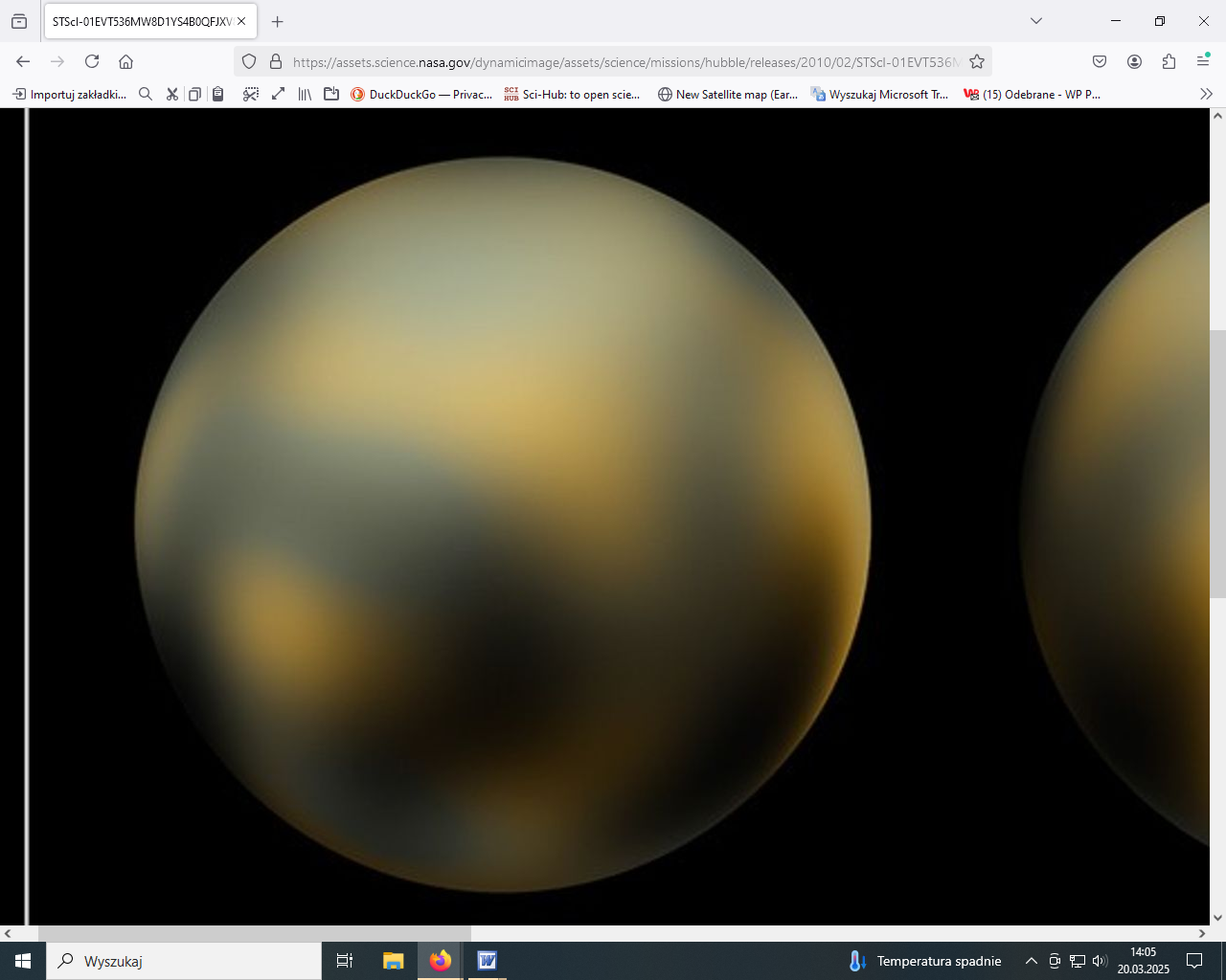 Pluton dawniej określany planetą, dziś jest kwalifikowany jako planetoida między innymi ze względu na bardzo ekscentryczną orbitę. Obecność miast na Plutonie możemy zaobserwować na rys.