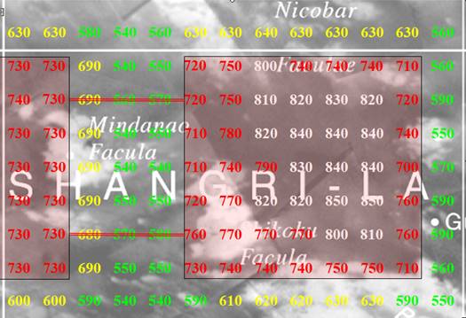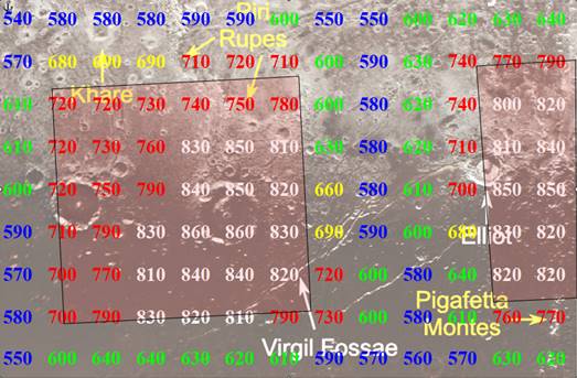 Zobaczmy więc co możemy wyczytać ze zdjęć satelitarnych dotyczących innych ciał niebieskich Układu Słonecznego. Które miejsca zbadać. Może te z bardziej sympatycznymi nazwami. Przedstawione mapki mają wielkość analogiczną do przedstawionych w poprzednich dwóch artykułach dotyczących podziemnych miast na Ziemi. Jednak mapy i zdjęcia planet nie są przeznaczone dla podróżników, żeby mogli sprawdzić dzielące ich od szukanego miejsca kilometry. Nie ma tam zwykle podanej skali. Pozostaje przybliżone wyznaczanie wielkości badanego obszaru, z porównania tego fragmentu ze średnicą całej planety. Na mapkach są zaznaczone wartości promieniowania cząstek pola torsyjnego filtrowanego spektroskopowo, dla sygnału pierwiastka 140. Wykonane zostały z użyciem spektroskopu cząstek pola torsyjnego z wzmacniaczem radionicznym i z rozszczepieniem sygnału polem torsyjnym pochodzącym od protonów.